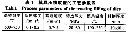 模具壓鑄成型的工藝參數(shù)如表1所示